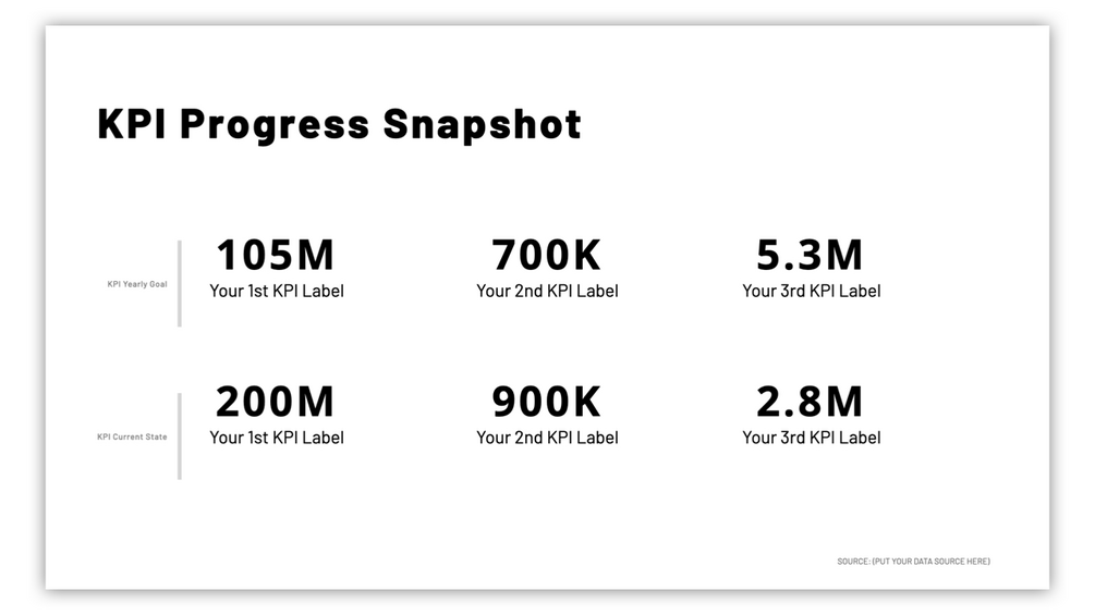 Use this template in your next deck to help your stakeholders have a clear understanding of how your key performance indicators are trending for the year!