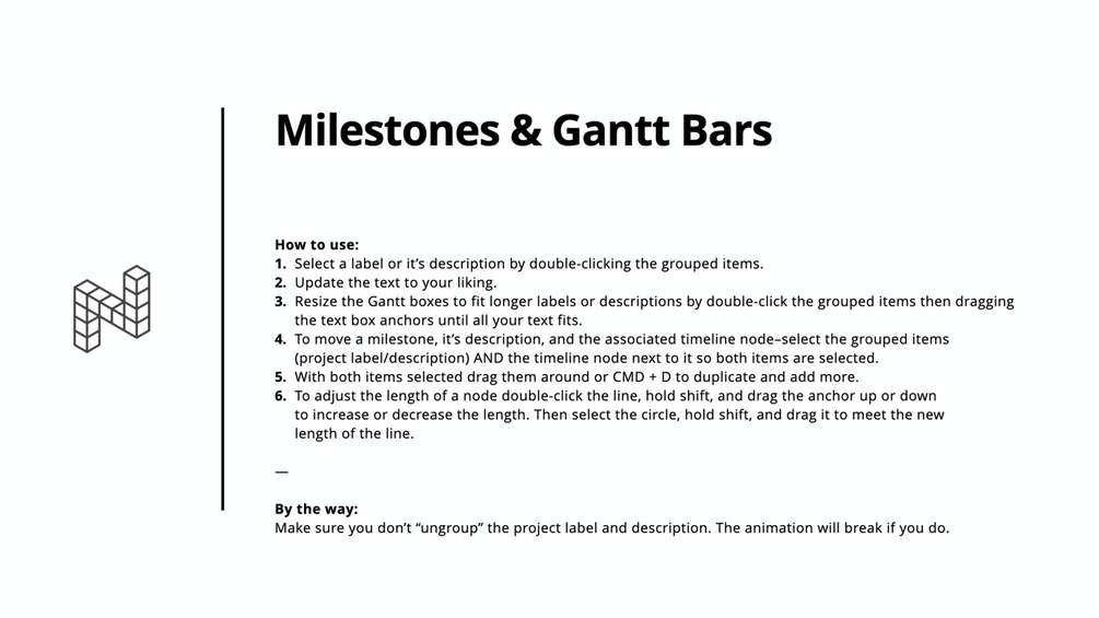 The Basic Gantt file is a keynote template that provides you with an overview of all the key projects and concurrent work streams happening during your initiative.