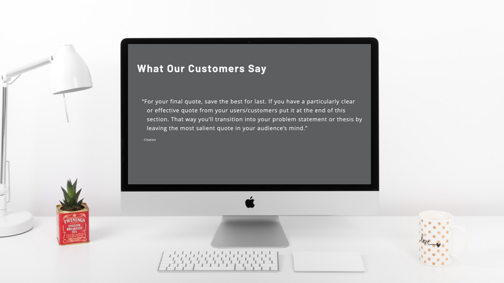 The Basic Quote file is a keynote template that ensures you've put the customer's voice front and center with no distractions.